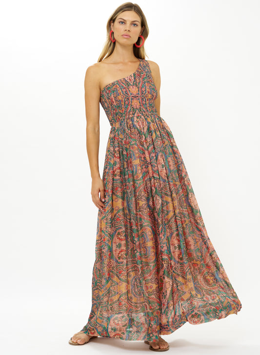 Oliphant Smocked One Shoulder Maxi