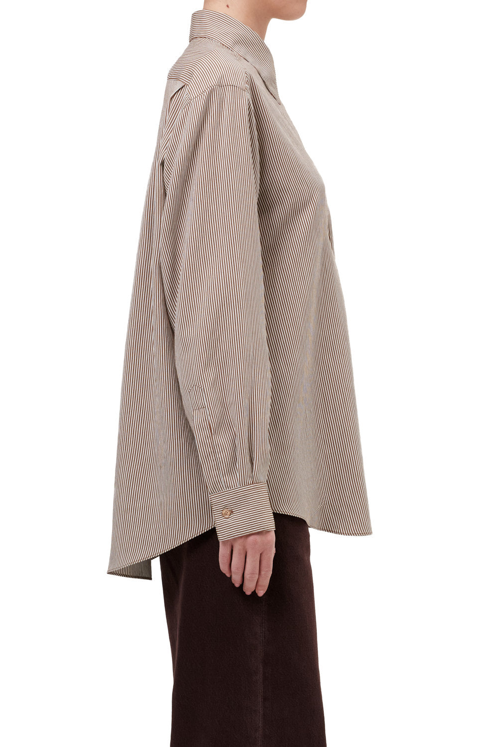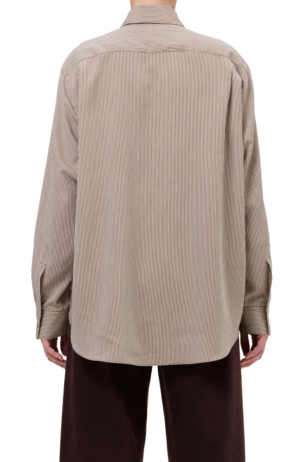 The Aris Shirt is cut in a relaxed silhouette with a classic collar and subtle dropped shoulder. Crafted with an ultra-lightweight feel, it drapes effortlessly with a refined, menswear-inspired black-and-white stripe. Style loosely over denim or half-tucked into tailored trousers for an easy, pulled-together look.