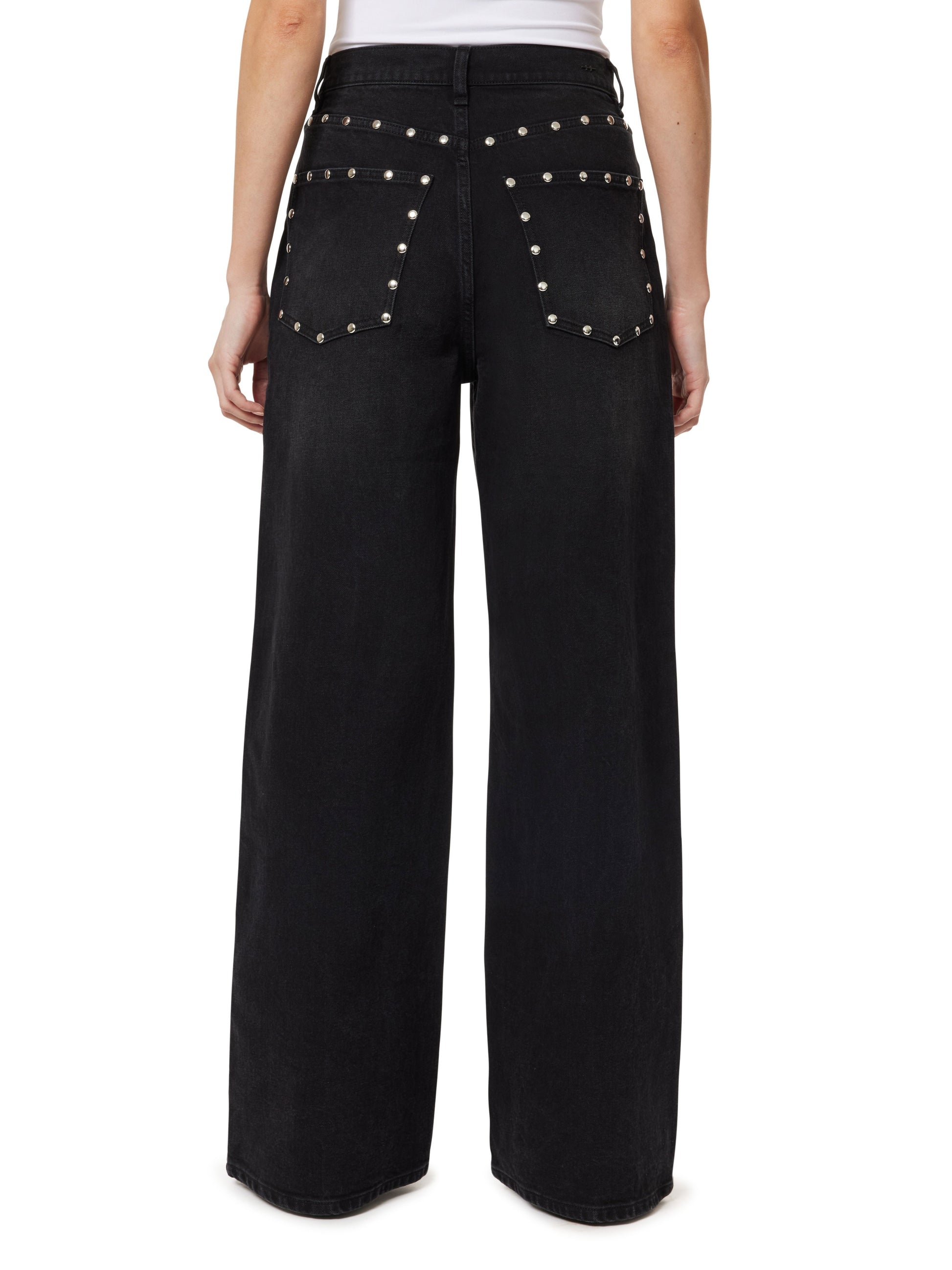 With a dramatic wide-leg silhouette and studded detailing that brings the edge, these jeans are built for bold looks and all-day comfort. Pair with a baby tee or oversized jacket.