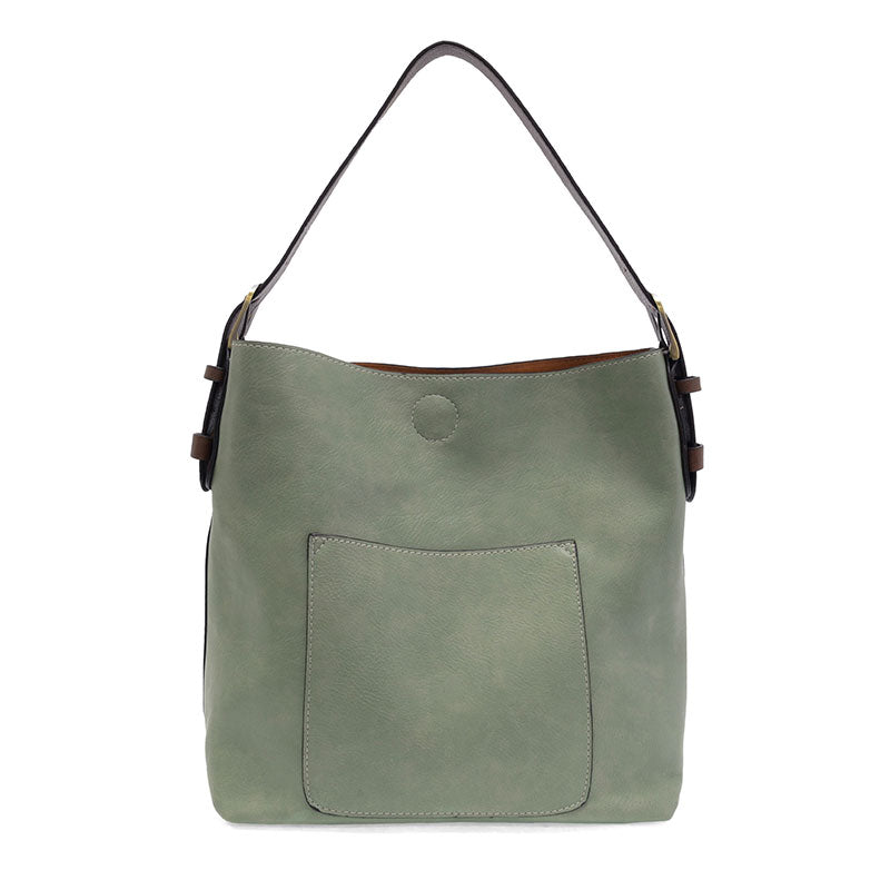 Equally timeless and modern, our best-selling classic hobo is made in rich vegan leather in beautiful colors always accented with neutral straps. This roomy bag accented with a large front pocket and a snap-in removable crossbody, has plenty of room to carry your needs in style