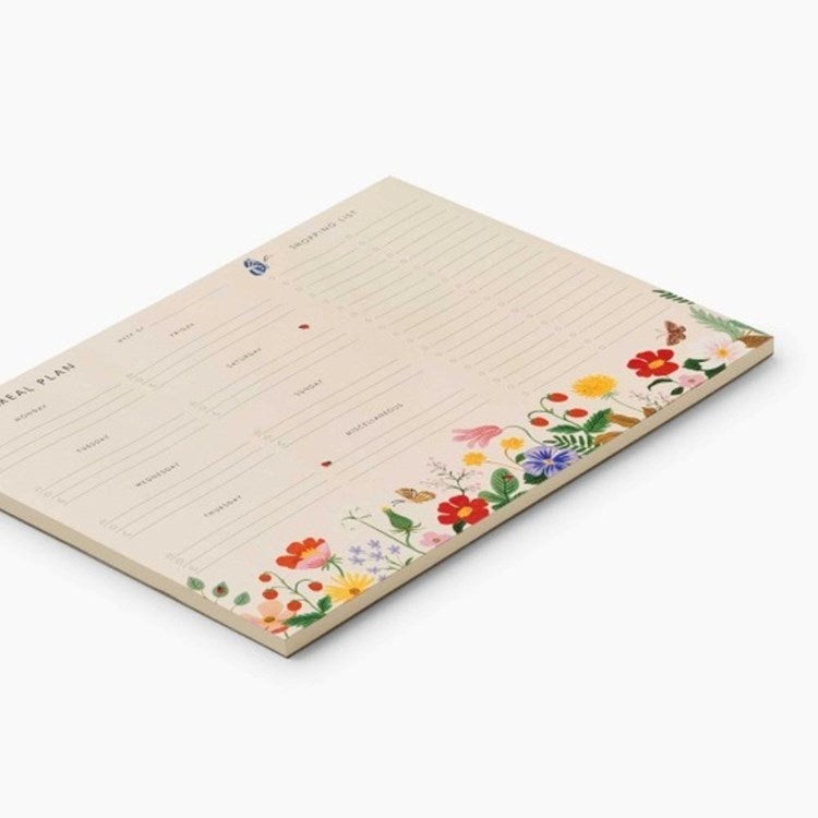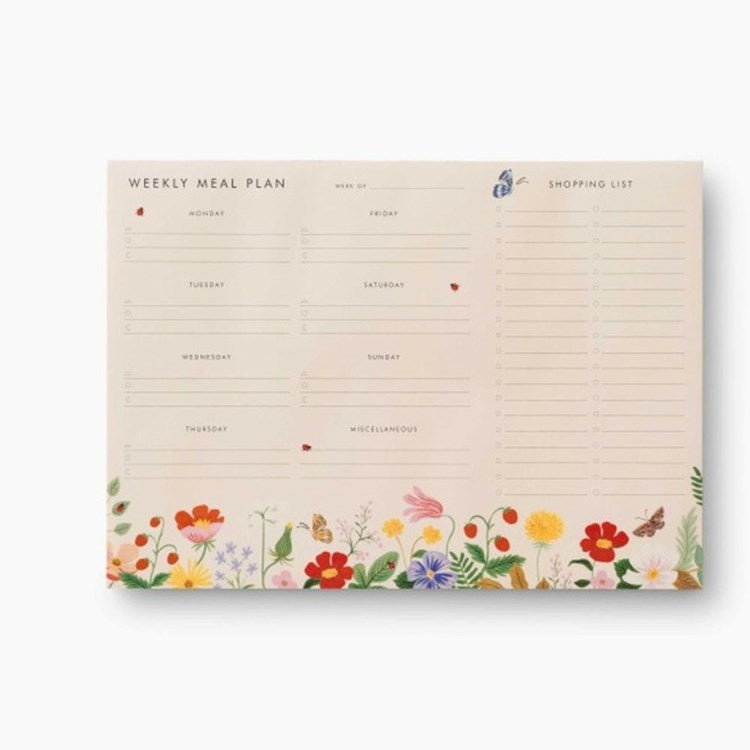 Finally master weekly meal planning with our organized notepad, complete with lines for every day and meal of the week and a perforated, tear-off shopping list. DETAILS - 9.75" L 6.75" W. Warm white text paper. Printed in full color. 52 tear-off pages. Made in USA