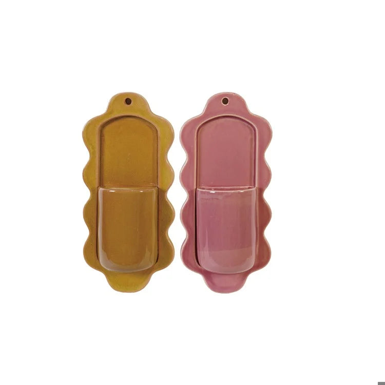 Accentuate your living space with this Stoneware Wall Vase featuring funky squiggle edges ideal for displaying your beloved floral arrangements. Measuring 5"W x 11"H, it's available in 2 cool colors!