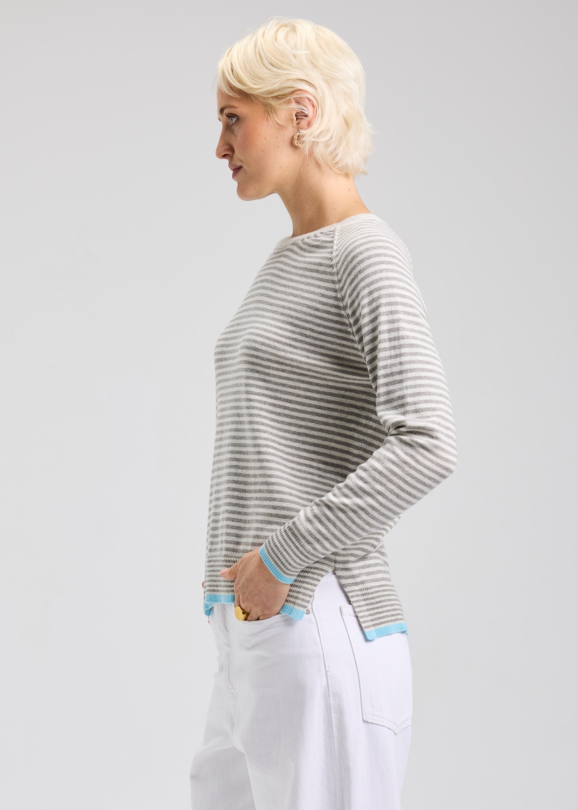 Striped Crew Neck with blue trim