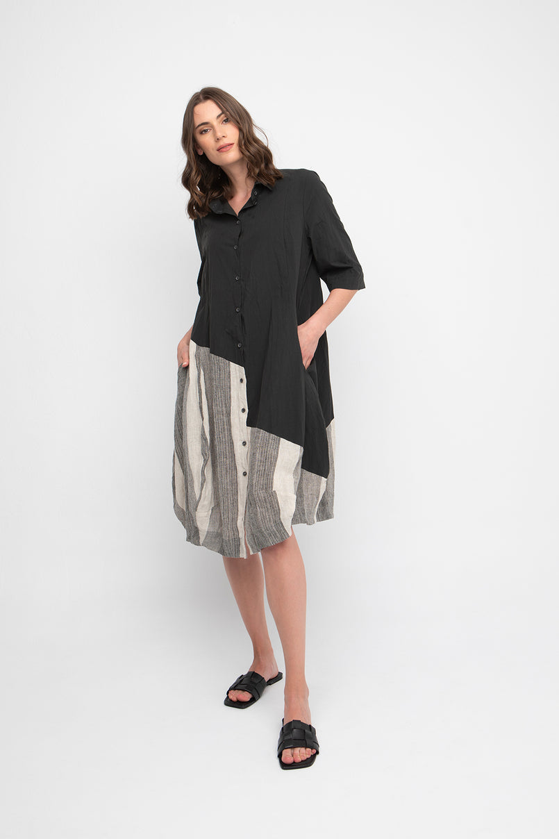 Midi shirt dress with elbow length sleeves in cotton and linen
