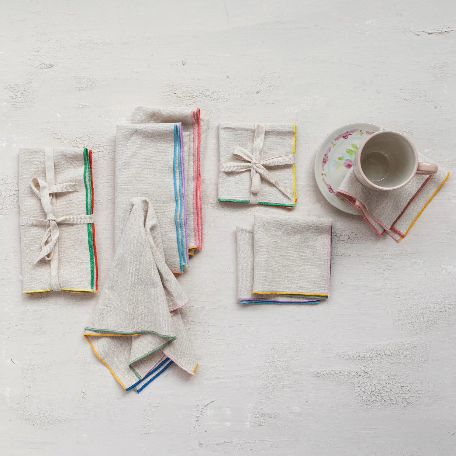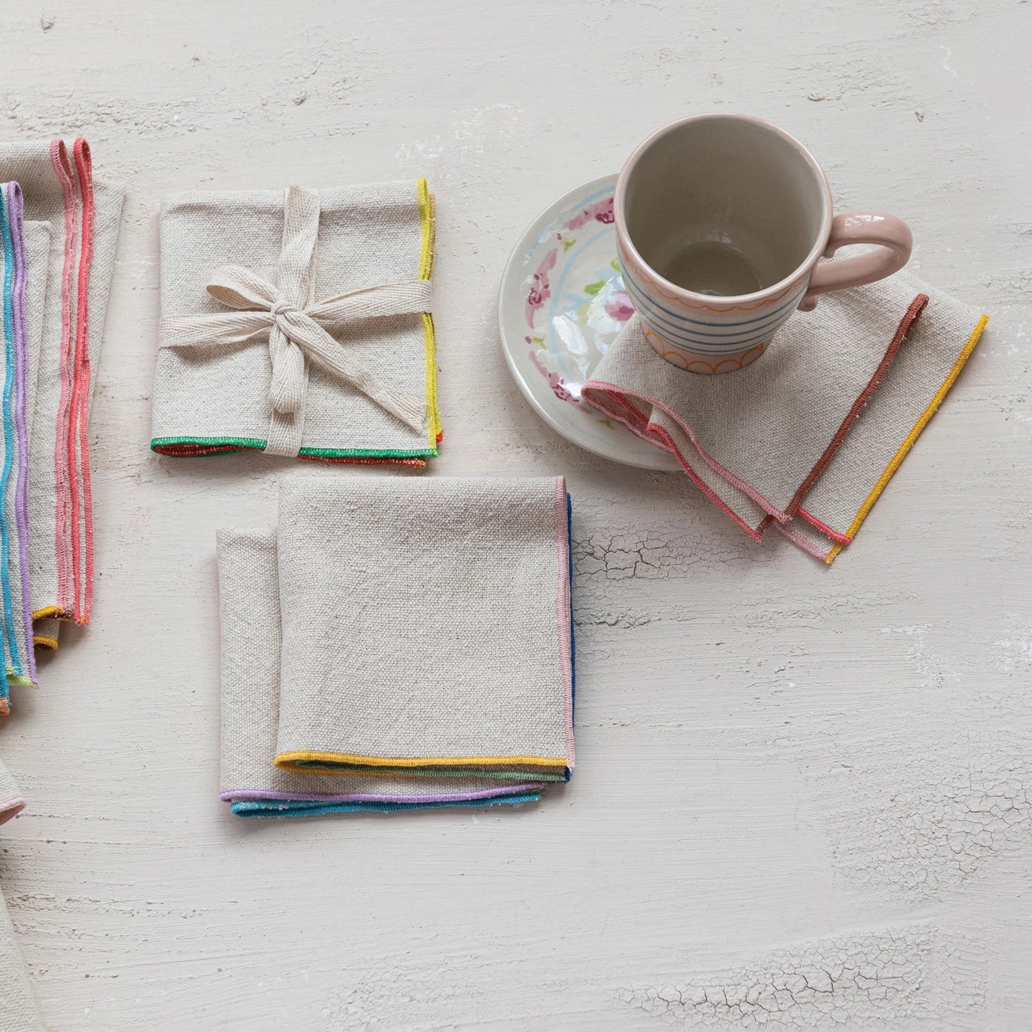Woven Cotton Cocktail Napkins with Stitched Colored Edge